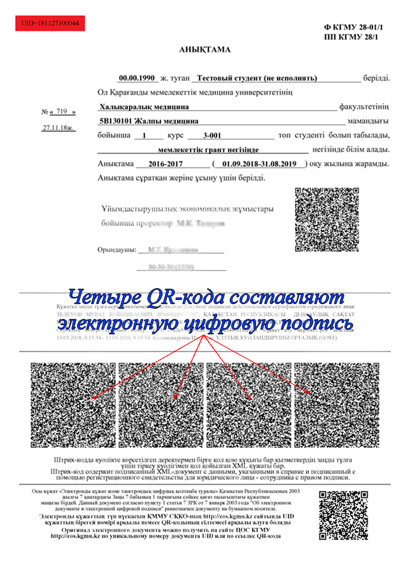 На рисунке представлен образец документа с электронной цифровой подписью.